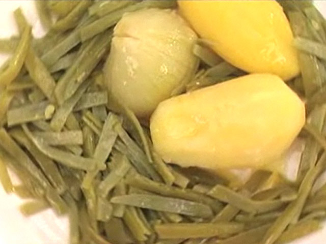 Рецепт испанской кухни.На 2 порции:бобы — 200 гр;картофель — 2 штуки;лук — 1 штука;вода, оливковое масло, соль, малиновый уксус. Язык: Русский